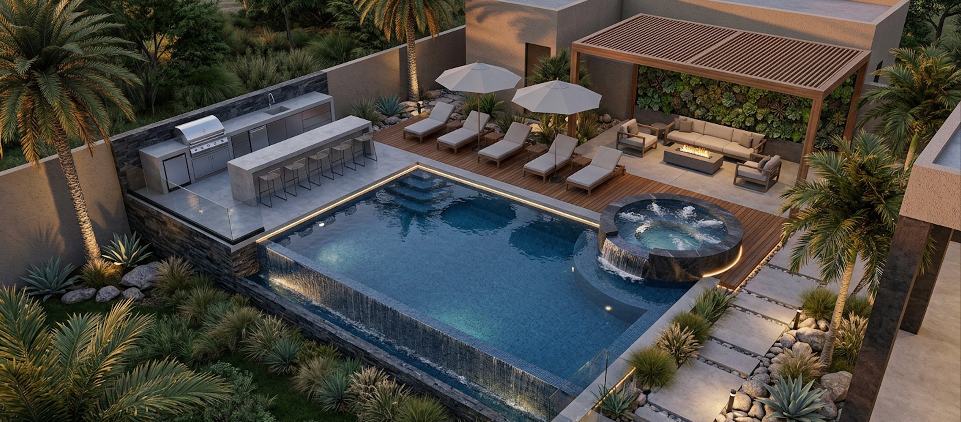 We merge architectural expertise with advanced 3D to redefine outdoor living. Experience your dream pool through hyper-realistic AI previews that leave nothing to the imagination.